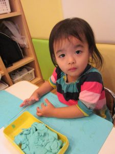 別日の粘土遊びでは型抜きや粘土ナイフを使いました