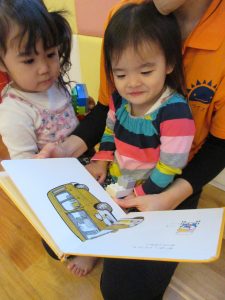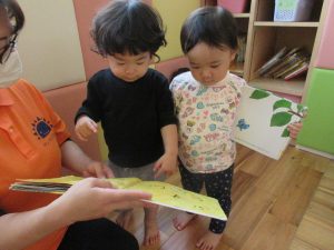 とっても嬉しそうに絵本うぃ楽しむお友だち![]()