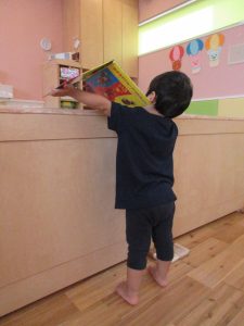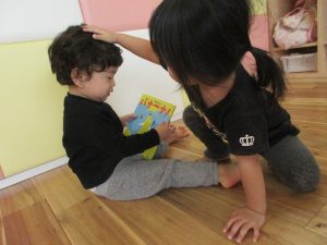 泣いていたお友達に絵本をどうぞ!してよしよし![]()