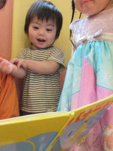 保育士に読んでもらってとっても嬉しそうな笑顔
