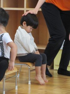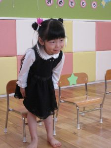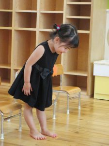 自分のお椅子の前でぺこり、とお辞儀も上手