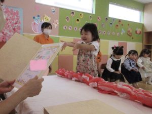 園長先生の挨拶に園からのプレゼント
