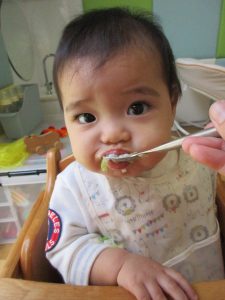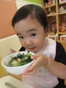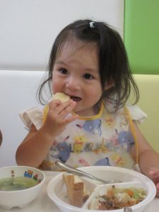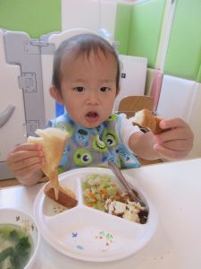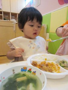 もも組さんは、月齢に合わせて離乳食を食べています![]()