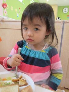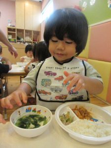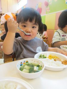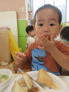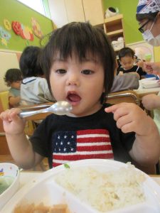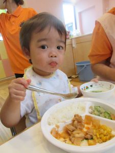 「おいしいね!」「いっぱい食べれるよ!」「せんせいもたべる?」など