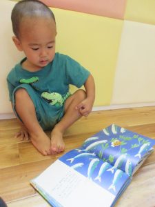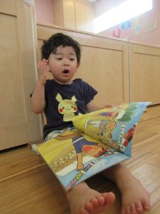 子どもたちも絵本を見ながら