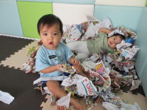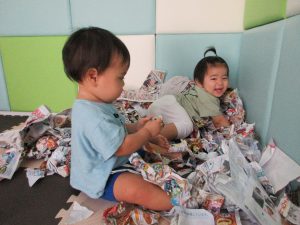 チラシ遊びやマット遊び♪ままごとなど楽しく過ごしています〜♪