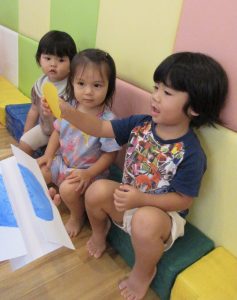 先生と一緒に、お名前を言ったり![]()