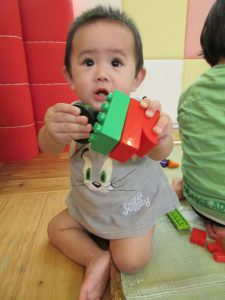 ハイハイでレゴをゲットしてみたりと興味津々です♪