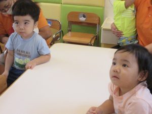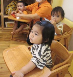 いすの上でからだを揺らしてごきげんに動く赤ちゃんが登場します♪