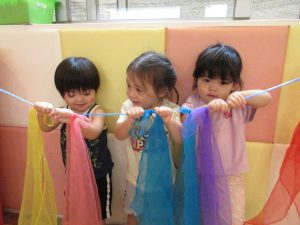 後半にはみんなが大好きなリトミックスカーフ![]()