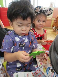 最後に「trick or treat!」と園長先生からお菓子を貰うと![]()