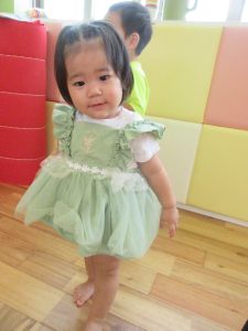 朝のおやつ後、可愛いお洋服に変身した子どもたち![]()
