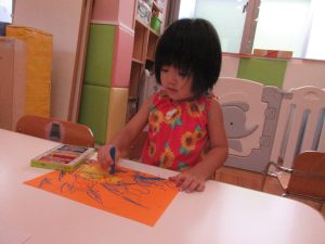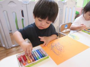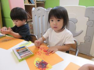 クレヨンお絵描きで模様をつけましたよ〜♪