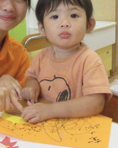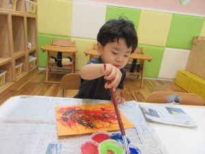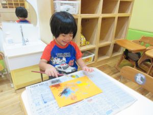 絵の具ではじき絵をすると、「わあーお」と大興奮