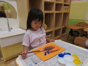 りんご組さんは絵の具塗りにもチャレンジしてみました☆