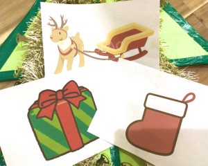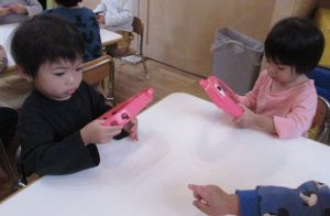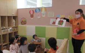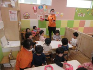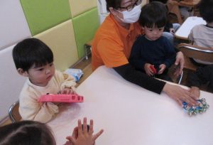 絵カードを持って伝えると、興味津々な子どもたち♪
