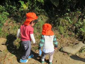 お友だちと草木に近寄り、「なーにー![]()