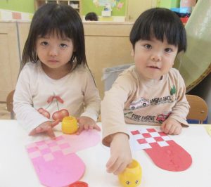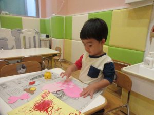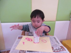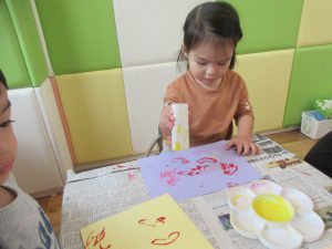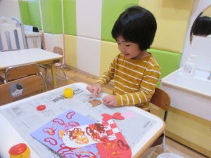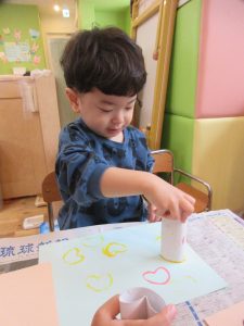 ハートスタンプでペタペタ♪完成させましたよ〜♪