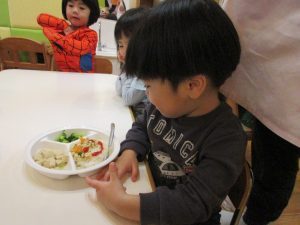お食事には鬼さんご飯が運ばれ♪
