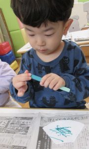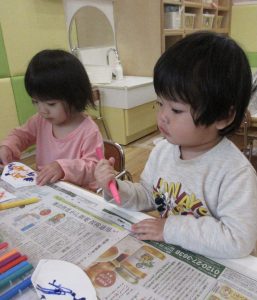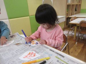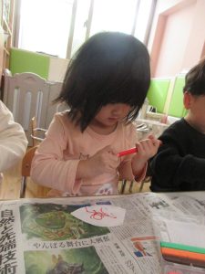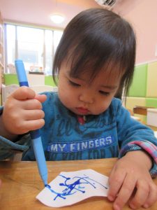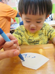 ももぐみさんも先生と一緒にペンでカキカキ♪