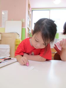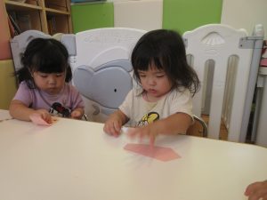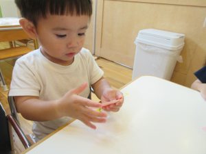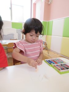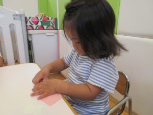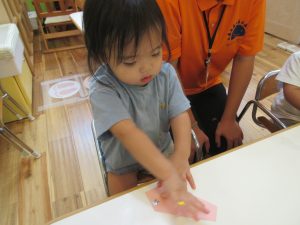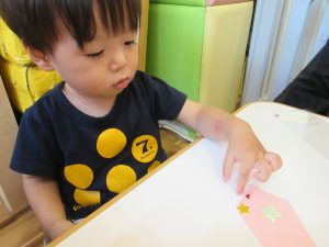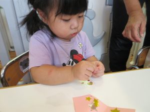 小さな指先で上手に貼り進めていく姿が見られました![]()