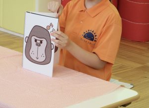 先生の手袋シアターが始まりの合図です![]()