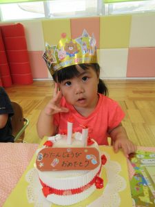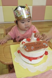 みんなからおめでとうのお歌を歌ってもらえて嬉しそうな![]()