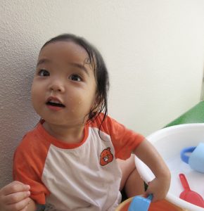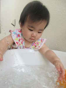 ももぐみさんは初めてのお水にびっくりでしたが、