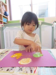 指先の感覚を味わうとどんどん夢中になる姿が見られ、