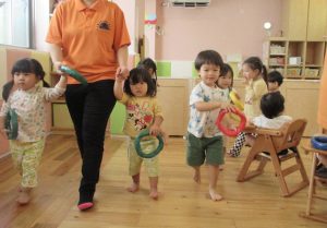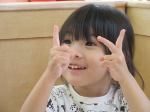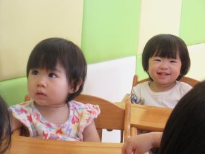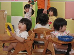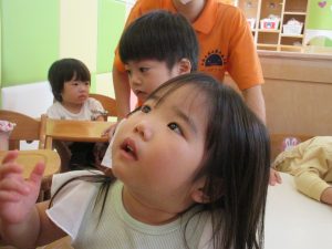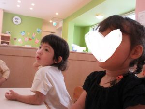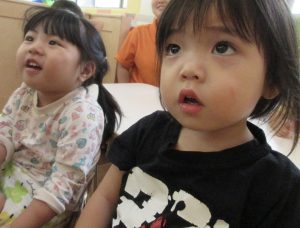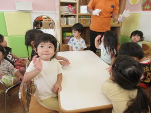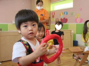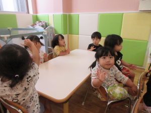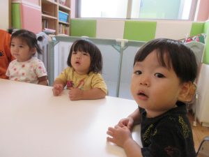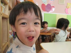 少し長い単語も、先生の真似っこを楽しむ姿が見られますよ![]()