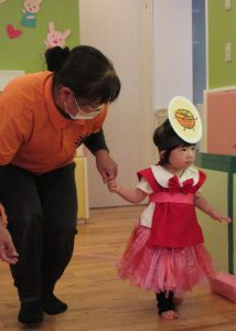 子どもたちの可愛いダンス「ピカピカブー」を見てもらった後に、