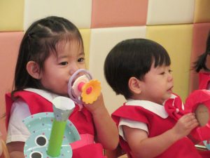 「どんぐりころころ」や「きらきら星」をリズムに乗って楽しみました