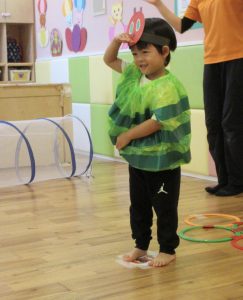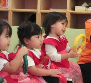 ママやパパに英語カリキュラムを見てもらいましたお歌やフラッシュカードにノリノリで楽しみましたよ~