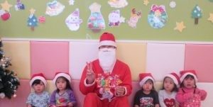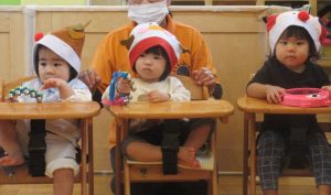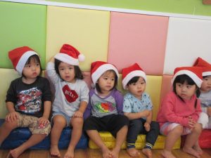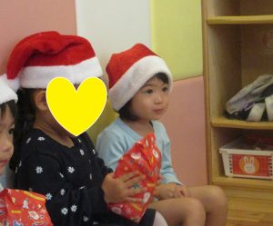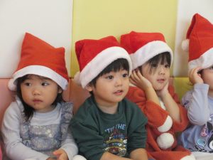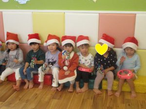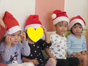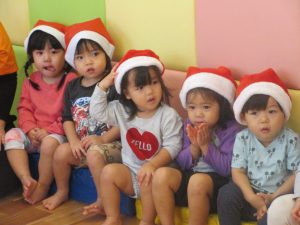 サンタクロースの帽子をかぶってクリスマス会が始まりました![]()