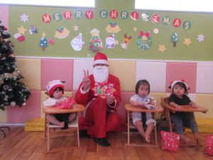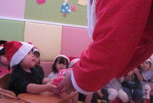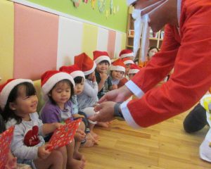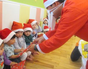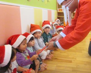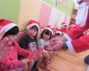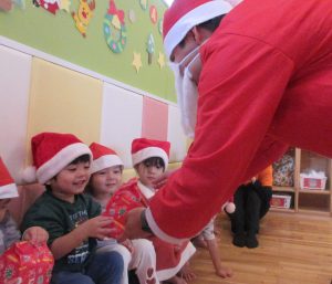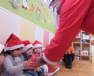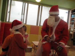 「わあ!サンタさんだ!」とびっくりしたり大喜びな子どもたちでしたよ♪