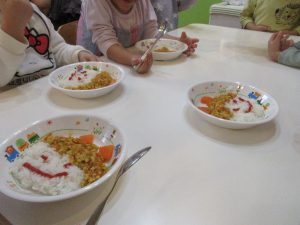 みんなに大好きメニューのカレーが鬼カレーになっていましたよ♪