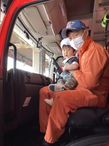運転席に乗せてもらうと、目をキラキラ輝かせていたお友達です!