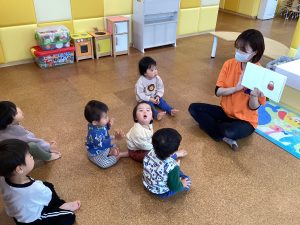 『だるまさんが』の絵本を見ている様子をお伝えします♪