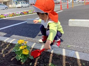 今まで、園にある花壇には、パンジーがたくさん植えてあったのですが、