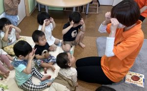 『おべんとうばこのうた』の手遊びをするのが大好きな子どもたち💕