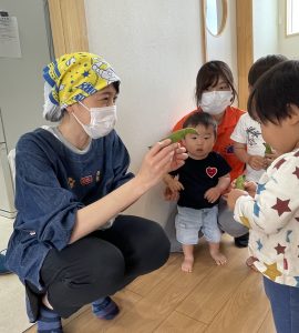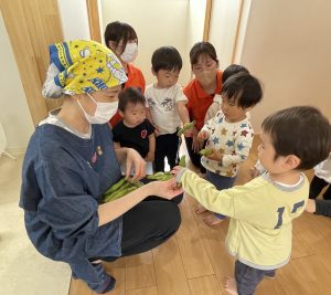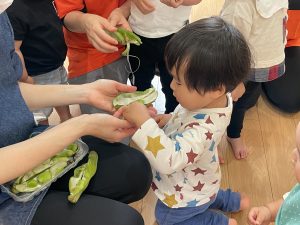 調理をする前に子どもたちにそら豆を見せてくれました✨