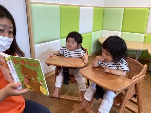 今回は、もも組さん(0歳児)の読み聞かせの様子です🍑