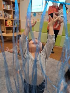 スズランテープを使って雨のようにして遊んだり…