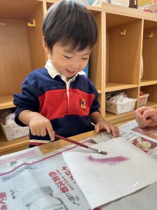 筆で絵の具をのせると…