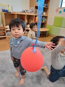 風船を吊るして、タッチ!