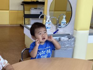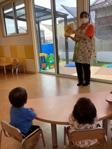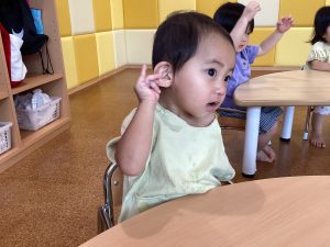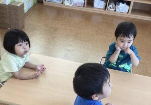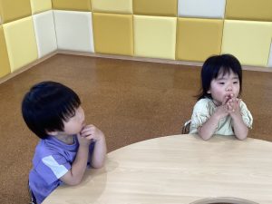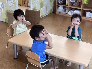 『にーらめっこしましょ 笑うとまけよ〜…』