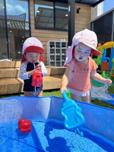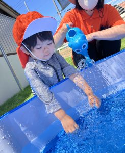 自分の好きな水遊びの玩具を見つけて遊んでいますよ!
