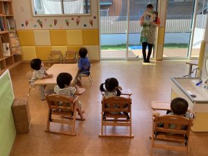 もも組(0歳児)のお友達も夢中ですね![]()