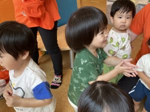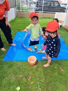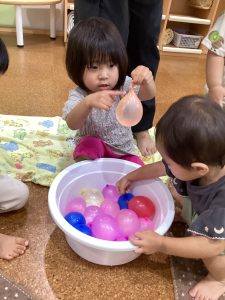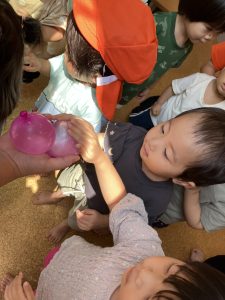 室内で遊んでいるお友達も水風船遊びをしました⭐️