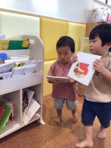 絵本コーナーは子ども達も大好きでトコトコっと行き、